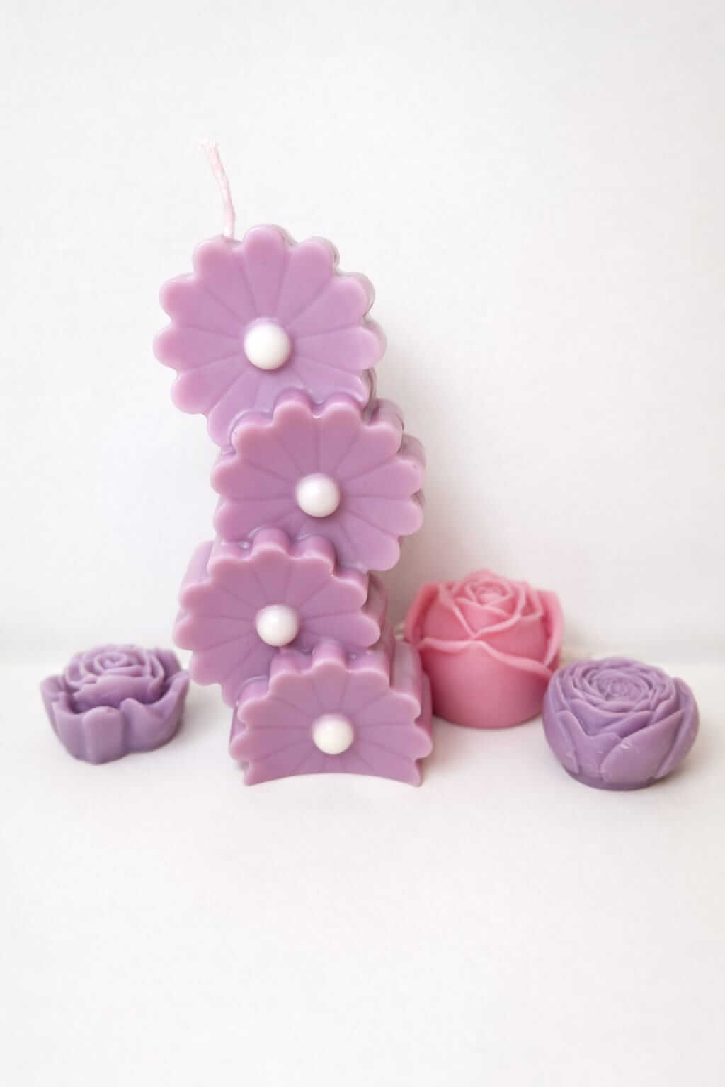 Vela artesanal de diseño vertical con relieve floral detallado. Fabricada a mano con cera de soja premium en nuestro estudio. Sus medidas son ideales para combinar con otros elementos decorativos en bandejas o estanterías.