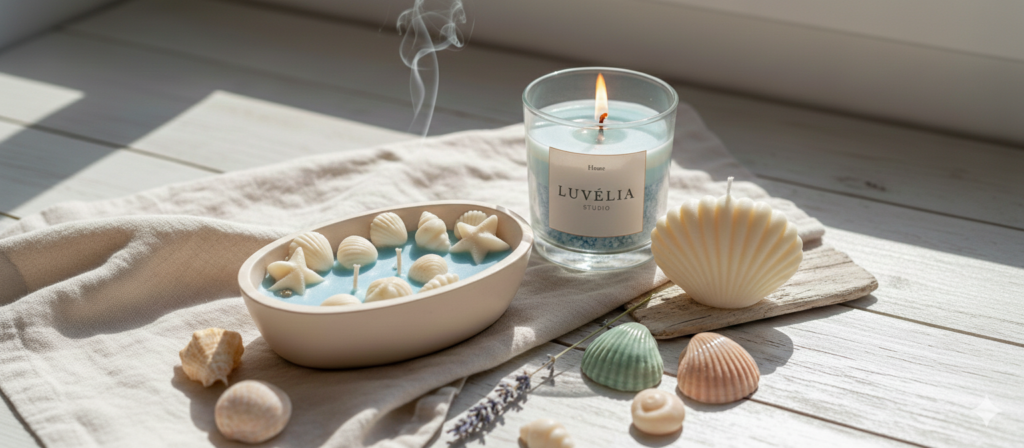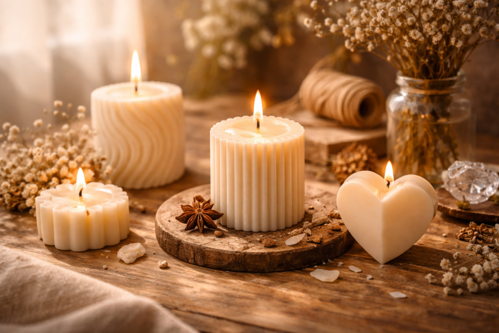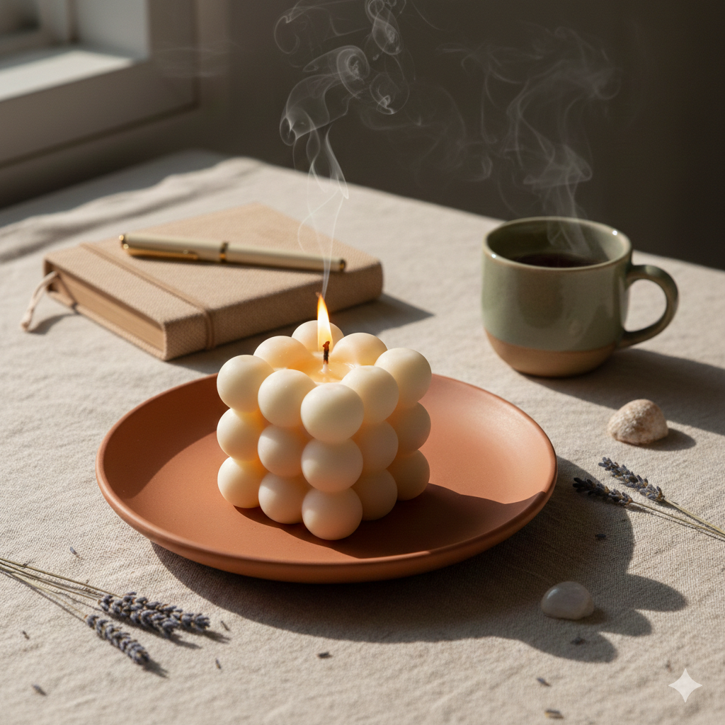 Velas artesanales creadas para acompañar rituales de calma, journaling y meditación.